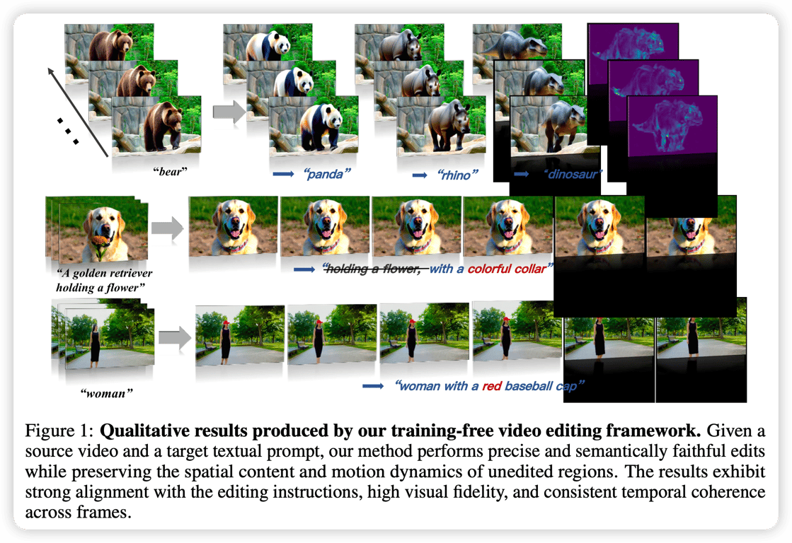 <ul class="dashed" data-apple-notes-indent-amount="0"><li><span style="font-family: '.PingFangUITextSC-Regular'">文章标题:</span>FlowDirector: Training-Free Flow Steering for Precise Text-to-Video Editing</li><li><span style="font-family: '.PingFangSC-Regular'">文章地址:</span><a href="https://arxiv.org/abs/2506.05046">https://arxiv.org/abs/2506.05046</a> </li><li>arxiv</li></ul> <img src="https://imagedelivery.net/phxEHgsq3j8gSnfNAJVJSQ/NODE2_A1D567FA-5654-48E0-940F-DCDD8F7D91D9/public" style="background-color:initial;max-width:min(100%,2092px);max-height:min(1396px);;background-image:url(https://imagedelivery.net/phxEHgsq3j8gSnfNAJVJSQ/NODE2_A1D567FA-5654-48E0-940F-DCDD8F7D91D9/public);height:auto;width:100%;object-fit:cover;background-size:cover;display:block;" width="2092" height="1396"> 文章很简单,就是将FlowDirector迁移到了视频编辑上面,并做了一些优化:首先是在编辑路径中使用了前景mask,使得其非编辑区域保持不变,第二个改进感觉没用。 <img src="https://imagedelivery.net/phxEHgsq3j8gSnfNAJVJSQ/NODE2_F0FD8500-627B-461B-83BF-8AC45C85CC16/public" style="background-color:initial;max-width:min(100%,2110px);max-height:min(1448px);;background-image:url(https://imagedelivery.net/phxEHgsq3j8gSnfNAJVJSQ/NODE2_F0FD8500-627B-461B-83BF-8AC45C85CC16/public);height:auto;width:100%;object-fit:cover;background-size:cover;display:block;" width="2110" height="1448">