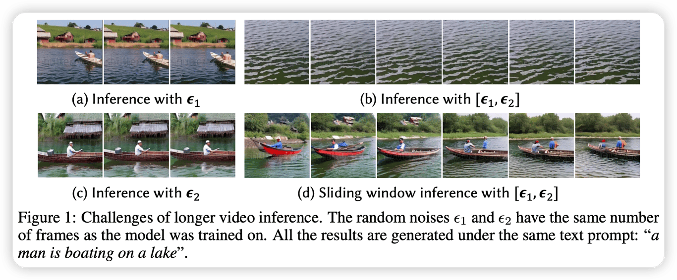 <ul class="dashed" data-apple-notes-indent-amount="0"><li><span style="font-family: '.PingFangUITextSC-Regular'">文章标题:</span>FREENOISE: TUNING-FREE LONGER VIDEO DIFFUSION VIA NOISE RESCHEDULING</li><li><span style="font-family: '.PingFangSC-Regular'">文章地址:</span><a href="https://arxiv.org/abs/2310.15169">https://arxiv.org/abs/2310.15169</a> </li><li>ICLR 2024</li></ul> <img src="https://imagedelivery.net/phxEHgsq3j8gSnfNAJVJSQ/NODE2_91EDA054-FF75-4702-99C6-C1BB8AC57766/public" style="background-color:initial;max-width:min(100%,2528px);max-height:min(1148px);;background-image:url(https://imagedelivery.net/phxEHgsq3j8gSnfNAJVJSQ/NODE2_91EDA054-FF75-4702-99C6-C1BB8AC57766/public);height:auto;width:100%;object-fit:cover;background-size:cover;display:block;" width="2528" height="1148"> 文章针对现有文生视频模型只能输出固定帧数的视频的缺点进行优化,使其能够生成长视频且支持多prompt控制生成。具体来说,先对噪声进行拓展,并将其拓展部分进行小窗口随机重排序,从而得到了长序列噪声;但是原模型不能很好地处理长噪声(预训练数据固定帧数),因此提出了基于滑动窗口的注意力混合机制,即每次计算注意力都维持原序列长度,然后再进行加权混合,从而使得模型能够处理长序列噪声。对于多prompt,该方法进行了不同时间步的text embedding混合引导策略。 <img src="https://imagedelivery.net/phxEHgsq3j8gSnfNAJVJSQ/NODE2_C73D14E8-9CE0-4678-B69A-56F8E1B07513/public" style="background-color:initial;max-width:min(100%,1916px);max-height:min(794px);;background-image:url(https://imagedelivery.net/phxEHgsq3j8gSnfNAJVJSQ/NODE2_C73D14E8-9CE0-4678-B69A-56F8E1B07513/public);height:auto;width:100%;object-fit:cover;background-size:cover;display:block;" width="1916" height="794"> <ul class="dashed" data-apple-notes-indent-amount="0"><li>数据:无需训练数据</li><li>指标:FVD;KVD;CLIP-SIM;Inference Time</li><li>硬件:不重要</li><li>开源:<a href="http://haonanqiu.com/projects/FreeNoise.html">http://haonanqiu.com/projects/FreeNoise.html</a> </li></ul>