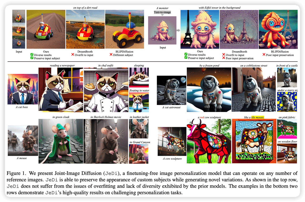 - 文章标题:JeDi: Joint-Image Diffusion Models for Finetuning-Free Personalized Text-to-Image Generation