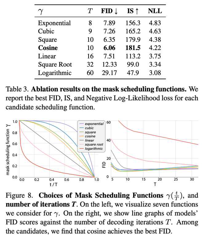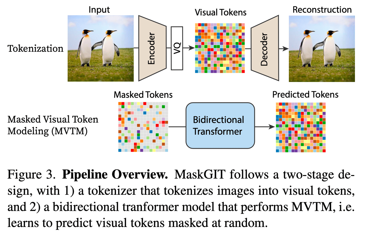 <img src="https://imagedelivery.net/phxEHgsq3j8gSnfNAJVJSQ/NODE2_0C94D148-886B-4903-92D3-6AA9418CB8D5/public" style="background-color:initial;max-width:min(100%,2342px);max-height:min(1256px);;background-image:url(https://imagedelivery.net/phxEHgsq3j8gSnfNAJVJSQ/NODE2_0C94D148-886B-4903-92D3-6AA9418CB8D5/public);height:auto;width:100%;object-fit:cover;background-size:cover;display:block;" width="2342" height="1256"> <ul class="dashed" data-apple-notes-indent-amount="0"><li><span style="font-family: '.PingFangSC-Regular'">文章标题:</span>MaskGIT: Masked Generative Image Transformer</li><li><span style="font-family: '.PingFangSC-Regular'">文章地址:</span><a href="https://arxiv.org/abs/2202.04200">https://arxiv.org/abs/2202.04200</a> </li><li>CVPR 2022</li></ul> 文章提出了MaskGIT,一种用于图像生成的Transformer,其特点就是在对图像token建模时同时对整个图像的token进行建模,而不是传统的每个位置依次进行自回归建模,这种方法即达到了SOTA的效果,也大大减少了生成的时间。并且该方法也可以拓展到图像编辑的任务。 在图像生成中,GANs取得了很好的效果,但其训练具有不稳定性,并且缺乏生成图像的多样性,基于Transformer在NLP中的效果,Transformer在图像生成领域也有了很多发展,而这些方法都将图像作为一个token序列进行建模,同自回归模型一样生成图像,这样效果不是最优的并且生成速率低。因此作者提出了MaskGIT,一种用于图像生成的双向的transformer。 <img src="https://imagedelivery.net/phxEHgsq3j8gSnfNAJVJSQ/NODE2_9BA6FC9C-FD51-407F-ACC5-FCDCDA6B987F/public" style="background-color:initial;max-width:min(100%,1888px);max-height:min(1194px);;background-image:url(https://imagedelivery.net/phxEHgsq3j8gSnfNAJVJSQ/NODE2_9BA6FC9C-FD51-407F-ACC5-FCDCDA6B987F/public);height:auto;width:100%;object-fit:cover;background-size:cover;display:block;" width="1888" height="1194"> 作者将图像生成视为两阶段,如上图,第一个阶段为tokenization,将图像压缩到离散的隐空间,第二个阶段为对隐空间token进行建模。该模型主要针对第二个阶段,作者提出了一个<i>Masked Visual Token Modeling</i> (MVTM)的方法来训练一个双向transformer。 首先介绍训练,对于一张图像,得到隐空间的token,随机选取0-1比例的token进行mask,然后基于mask后的token集对mask掉的token进行预测,损失函数如下: <img src="https://imagedelivery.net/phxEHgsq3j8gSnfNAJVJSQ/NODE2_B70CAAAF-877E-479D-B202-6A7A2E018836/public" style="background-color:initial;max-width:min(100%,872px);max-height:min(130px);;background-image:url(https://imagedelivery.net/phxEHgsq3j8gSnfNAJVJSQ/NODE2_B70CAAAF-877E-479D-B202-6A7A2E018836/public);height:auto;width:100%;object-fit:cover;background-size:cover;display:block;" width="872" height="130"> mask是随机选取的,因此在transformer的注意力计算中是双向的,因此该模型为双向的transformer。然后介绍解码过程,首先基于当前的token对所有的token进行预测得到每个位置的概率分布,然后基于该分布对每个位置的token进行采样,并将概率置为置信度,随后基于mask规划函数计算去掉mask的token数,基于该数将置信度高的token去掉mask,得到了下一步的token与mask,主图展示了传统的和MaskGIT的decode过程。最后介绍mask设计,不论是训练还是推理,mask的token数是非常关键的因素,作者对该函数进行了分类探索实验:线性函数、凹函数以及凸函数,其实验结果如下图。 <img src="https://imagedelivery.net/phxEHgsq3j8gSnfNAJVJSQ/NODE2_429FCD5B-97C0-43AC-BC75-4DD776B99AF0/public" style="background-color:initial;max-width:min(100%,1172px);max-height:min(1356px);;background-image:url(https://imagedelivery.net/phxEHgsq3j8gSnfNAJVJSQ/NODE2_429FCD5B-97C0-43AC-BC75-4DD776B99AF0/public);height:auto;width:100%;object-fit:cover;background-size:cover;display:block;" width="1172" height="1356"> 因此作者选择了效果最好的余弦函数作为mask函数。 最后作者进行了充足的实验对比了其他模型,可以看到该方法能够提高指标并且减少生成时间。 <img src="https://imagedelivery.net/phxEHgsq3j8gSnfNAJVJSQ/NODE2_0249E57E-780D-49F3-8FF3-99F794C7B13D/public" style="background-color:initial;max-width:min(100%,1152px);max-height:min(684px);;background-image:url(https://imagedelivery.net/phxEHgsq3j8gSnfNAJVJSQ/NODE2_0249E57E-780D-49F3-8FF3-99F794C7B13D/public);height:auto;width:100%;object-fit:cover;background-size:cover;display:block;" width="1152" height="684"> <img src="https://imagedelivery.net/phxEHgsq3j8gSnfNAJVJSQ/NODE2_0F3EC884-BEC9-43A9-B9FE-8B2A2D72E502/public" style="background-color:initial;max-width:min(100%,2340px);max-height:min(1120px);;background-image:url(https://imagedelivery.net/phxEHgsq3j8gSnfNAJVJSQ/NODE2_0F3EC884-BEC9-43A9-B9FE-8B2A2D72E502/public);height:auto;width:100%;object-fit:cover;background-size:cover;display:block;" width="2340" height="1120"> <img src="https://imagedelivery.net/phxEHgsq3j8gSnfNAJVJSQ/NODE2_BE391F8D-19A8-40E3-A48B-41C7047E8D9B/public" style="background-color:initial;max-width:min(100%,1144px);max-height:min(884px);;background-image:url(https://imagedelivery.net/phxEHgsq3j8gSnfNAJVJSQ/NODE2_BE391F8D-19A8-40E3-A48B-41C7047E8D9B/public);height:auto;width:100%;object-fit:cover;background-size:cover;display:block;" width="1144" height="884">