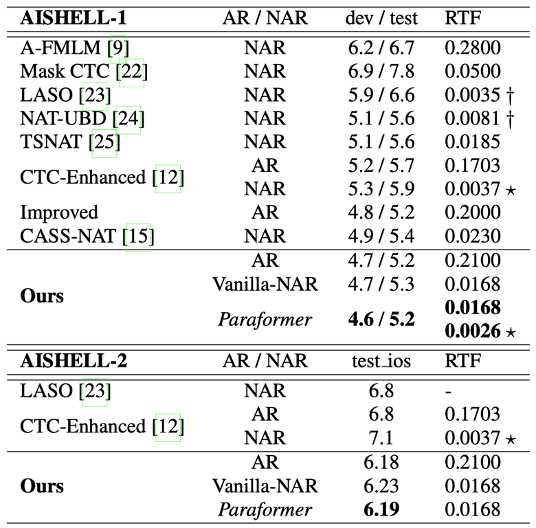 <img src="https://imagedelivery.net/phxEHgsq3j8gSnfNAJVJSQ/NODE2_C7F0FAAB-EE2E-4327-9B89-ACB86609BAB4/public" style="background-color:initial;max-width:min(100%,900px);max-height:min(734px);;background-image:url(https://imagedelivery.net/phxEHgsq3j8gSnfNAJVJSQ/NODE2_C7F0FAAB-EE2E-4327-9B89-ACB86609BAB4/public);height:auto;width:100%;object-fit:cover;background-size:cover;display:block;" width="900" height="734"> <ul class="dashed" data-apple-notes-indent-amount="0"><li>文章标题:Paraformer: Fast and Accurate Parallel Transformer for Non-autoregressive End-to-End Speech Recognition</li><li>文章地址:<a href="https://arxiv.org/abs/2206.08317">https://arxiv.org/abs/2206.08317</a> </li><li>accepted by INTERSPEECH 2022</li></ul> 由于最近在商汤实习,在做语音模态相关的工作,因此最近这段时间看的大部分文章都是语音模态的。 这篇文章来自阿里的语音实验室,提出了Paraformer模型,该模型为端到端的非自回归语音识别模型。 文章提到Transformer在当前语音识别具有统治地位,而Transformer的Decoder部分为AR(自回归)生成的,这大大增加了推理时间。为了解决该问题,很多NAR(非自回归)方法被提出,目的是并行生成,例如:单步NAR。然而由于单步NAR大多都假设输出的token之间是独立的,因此效果大都不如AR。作者认为要提高单步NAR的效果,主要包含两个困难:<b>首先是,准确地预测token数和提取隐变量;其次,提高对输出token间相互依赖关系的建模。</b><span style="font-family: '.PingFangSC-Regular'">因此作者提出了</span>Paraformer<span style="font-family: '.PingFangSC-Regular'">。实验证明,在效果相当的情况下,</span>Paraformer<span style="font-family: '.PingFangSC-Regular'">生成速度为</span>AR<span style="font-family: '.PingFangSC-Regular'">方式的</span>10<span style="font-family: '.PingFangSC-Regular'">倍。</span> Paraformer主要结构如主图,在训练中首先音频转化为fbanks(音频的声学特征),输入encoder得到隐变量H,H经过predictor预测token数N‘,并得到声学embedding Ea,decoder将Ea和H作为输入并输出Y‘(初步预测)输入sampler,将Y‘与真实标签Y做对比,将Ea中随机替换n个Ec(真实token的embedding)计算语义embedding Es,其中n为Y‘与Y的海明距离(即不同标签的个数)。得到Es后,将其和H作为decoder的输入预测标签Y‘’(最终预测)。在推理阶段,sampler不起作用,将得到的Ea与H作为decoder的输入进行文本标签的预测。 Predictor由两层卷积层组成,其输出为一系列范围为0-1的α,作者用α的和来预测N,使用MAE损失: <img src="https://imagedelivery.net/phxEHgsq3j8gSnfNAJVJSQ/NODE2_52900D75-18D5-4B4C-9DB2-7B75538947F8/public" style="background-color:initial;max-width:min(100%,514px);max-height:min(84px);;background-image:url(https://imagedelivery.net/phxEHgsq3j8gSnfNAJVJSQ/NODE2_52900D75-18D5-4B4C-9DB2-7B75538947F8/public);height:auto;width:100%;object-fit:cover;background-size:cover;display:block;" width="514" height="84"> 同时,predictor使用α与H的加权和来预测声学特征,加权时累计α,若α大于阈值β,则将加权和作为一个声学特征Ea(在训练时,α会因目标长度而缩放以此确保Ea的与Ec的长度相当,在推理时不会缩放),作者称该算法为CIF(Continuous Integrate-and-Fire),文章使用了动态阈值的方式: <img src="https://imagedelivery.net/phxEHgsq3j8gSnfNAJVJSQ/NODE2_0DDB1CC6-8999-47F7-95EF-D6DFE3979FCA/public" style="background-color:initial;max-width:min(100%,340px);max-height:min(136px);;background-image:url(https://imagedelivery.net/phxEHgsq3j8gSnfNAJVJSQ/NODE2_0DDB1CC6-8999-47F7-95EF-D6DFE3979FCA/public);height:auto;width:100%;object-fit:cover;background-size:cover;display:block;" width="340" height="136"> 下图为一个例子: <img src="https://imagedelivery.net/phxEHgsq3j8gSnfNAJVJSQ/NODE2_909AC608-AEEF-4CE4-BEFC-DA4519D495DF/public" style="background-color:initial;max-width:min(100%,894px);max-height:min(214px);;background-image:url(https://imagedelivery.net/phxEHgsq3j8gSnfNAJVJSQ/NODE2_909AC608-AEEF-4CE4-BEFC-DA4519D495DF/public);height:auto;width:100%;object-fit:cover;background-size:cover;display:block;" width="894" height="214"> Sampler主要采用了GLM的思想,对输出的token相互依赖进行建模,GLM的损失为: <img src="https://imagedelivery.net/phxEHgsq3j8gSnfNAJVJSQ/NODE2_06F7C5E1-6D07-41C0-8327-5E449591B8E0/public" style="background-color:initial;max-width:min(100%,1014px);max-height:min(168px);;background-image:url(https://imagedelivery.net/phxEHgsq3j8gSnfNAJVJSQ/NODE2_06F7C5E1-6D07-41C0-8327-5E449591B8E0/public);height:auto;width:100%;object-fit:cover;background-size:cover;display:block;" width="1014" height="168"> 其中GLM集合为sampler在Ea与Ec采样的结果,他能对token间的相互依赖进行建模。具体采样方式为: <img src="https://imagedelivery.net/phxEHgsq3j8gSnfNAJVJSQ/NODE2_11764977-F8C2-4765-A757-1576E8C2C3B3/public" style="background-color:initial;max-width:min(100%,982px);max-height:min(88px);;background-image:url(https://imagedelivery.net/phxEHgsq3j8gSnfNAJVJSQ/NODE2_11764977-F8C2-4765-A757-1576E8C2C3B3/public);height:auto;width:100%;object-fit:cover;background-size:cover;display:block;" width="982" height="88"> 其中d为海明距离。Sampler模块随机将Ea中λd个token替换成Ec的embedding,然后使用GLM集合的上下文去预测不存在于GLM但存在于标签当中的token,从而实现了对输出token相互依赖的建模。 模型的损失函数如下: <img src="https://imagedelivery.net/phxEHgsq3j8gSnfNAJVJSQ/NODE2_3ABE8BB2-6108-4B80-B917-F16AF43F48C5/public" style="background-color:initial;max-width:min(100%,762px);max-height:min(64px);;background-image:url(https://imagedelivery.net/phxEHgsq3j8gSnfNAJVJSQ/NODE2_3ABE8BB2-6108-4B80-B917-F16AF43F48C5/public);height:auto;width:100%;object-fit:cover;background-size:cover;display:block;" width="762" height="64"> 