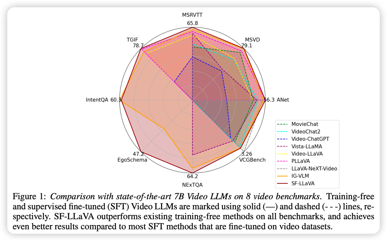 <ul class="dashed" data-apple-notes-indent-amount="0"><li><span style="font-family: '.PingFangUITextSC-Regular'">文章标题:</span>SLOWFAST-LLAVA: A STRONG TRAINING-FREE BASELINE FOR VIDEO LARGE LANGUAGE MODELS</li><li><span style="font-family: '.PingFangSC-Regular'">文章地址:</span><a href="https://arxiv.org/abs/2407.15841">https://arxiv.org/abs/2407.15841</a> </li><li>arxiv</li></ul> <img src="https://imagedelivery.net/phxEHgsq3j8gSnfNAJVJSQ/NODE2_9AB39C37-B9C5-4E16-B713-302226EC5681/public" style="background-color:initial;max-width:min(100%,1922px);max-height:min(950px);;background-image:url(https://imagedelivery.net/phxEHgsq3j8gSnfNAJVJSQ/NODE2_9AB39C37-B9C5-4E16-B713-302226EC5681/public);height:auto;width:100%;object-fit:cover;background-size:cover;display:block;" width="1922" height="950"> 文章利用LLaVA-NeXT(一个开源的增加了图片模态的大语言模型)完成视频任务,无需任何训练,如题,目标是提出一个无需训练的VideoLLM的baseline。 具体来说文章的思路非常简单,将视频的特征分成两部分,Slow和Fast,分别对应两个采样率和特征分辨率,其中Slow特征采样率比较低,特征分辨率比较高;Fast则反之。原因是Slow更关注空间细节和语义特征,Fast更关注动作线索。通过提取这两种特征使得LLaVA更好地理解该视频。然后将视频的特征与文本问题输入到LLaVA中。 <img src="https://imagedelivery.net/phxEHgsq3j8gSnfNAJVJSQ/NODE2_5AC2202C-805D-4664-ACE0-BF3A4063200F/public" style="background-color:initial;max-width:min(100%,1918px);max-height:min(1194px);;background-image:url(https://imagedelivery.net/phxEHgsq3j8gSnfNAJVJSQ/NODE2_5AC2202C-805D-4664-ACE0-BF3A4063200F/public);height:auto;width:100%;object-fit:cover;background-size:cover;display:block;" width="1918" height="1194"> <ul class="dashed" data-apple-notes-indent-amount="0"><li>数据:无需训练</li><li>指标:8个视频benchmark</li><li>硬件:8 A100</li><li>开源:<a href="https://github.com/apple/ml-slowfast-llava">https://github.com/apple/ml-slowfast-llava</a> </li></ul>